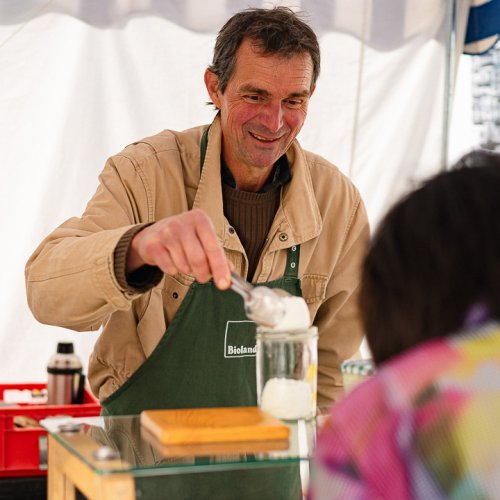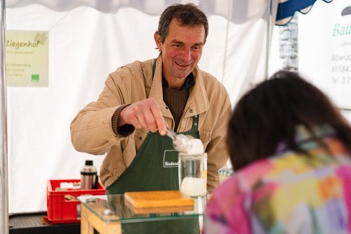Auf dem Bachhof spielen die Ziegen die erste Geige. Aus ihrer Milch stellen wir seit 2017 Käse, Joghurt und Quark her, welche wir auf dem Ulmer Wochenmarkt samstags anbieten. Außerdem halten wir noch ein paar Schweine, die dankbare Verwerter der anfallenden Ziegenmolke sind. Das gesamte Futter, vom Heu bis zur Ackerbohne, wird von uns selbst angebaut nach den Vorgaben des biologischen Landbaus.