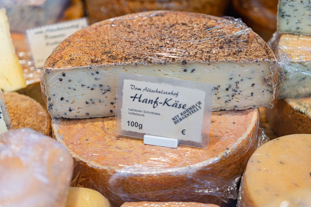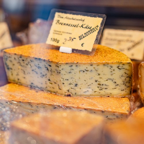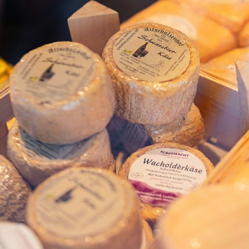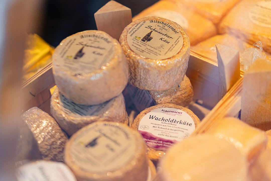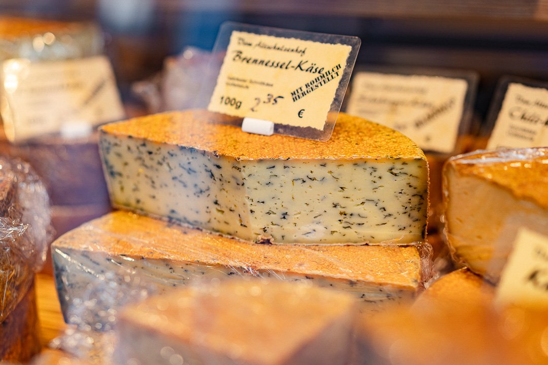 Die naturbelassene Milch gerinnt nach Zugabe von Kulturen und Lab und kann nach einiger Zeit geschnitten werden. Der so entstandene Käsebruch wird von der Molke getrennt, in Formen gepresst und kommt anschließend ins Salzbad. Danach kommt er in den Reifekeller wo er je nach Sorte von einem Monat bis zu zwei Jahren reifen kann. Das Ergebnis können sich die Besucher auf dem Ulmer Wochenmarkt schmecken lassen.