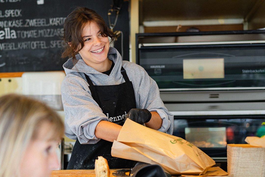 Auf den Dennete-Stand von Maurizio Reccia freut man sich besonders an kalten Tagen oder in den frühen Morgenstunden, denn hier bekommt man immer etwas warmes, frisch aus dem Ofen in die Hand. Köstliche Dennete, klassisch mit Speck und Zwiebeln oder vegetarisch mit Käse und Kartoffeln. Auch saisonale Specials wie z. B. mit Spargel, sind immer wieder im Angebot.