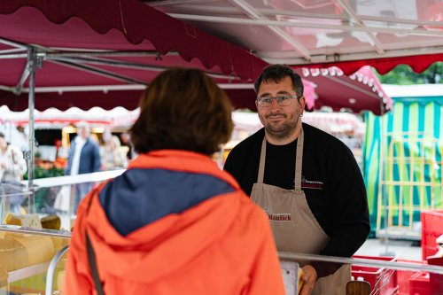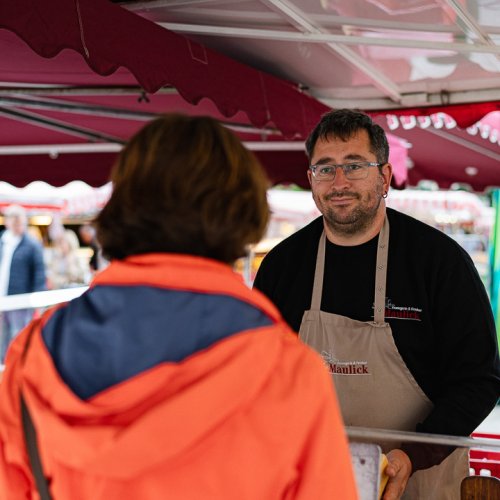 Das junge Verkaufsteam von Fromagerie und Feinkost Maulick sorgt mit den Spezialitäten hier auf dem Ulmer Wochenmarkt immer wieder für Aufsehen. Hier gibt es auch ganz besonders ausgefallene Käsesorten, die jeden Gaumen überraschen.