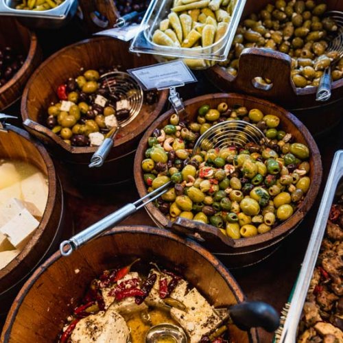 Viel zu sehen, riechen und schmecken am Feinkost-Stand