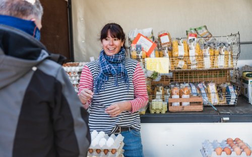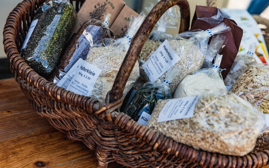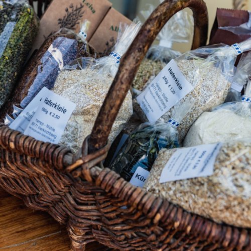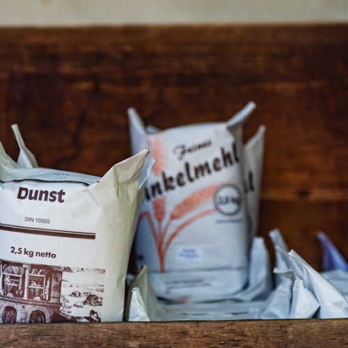 Als Mühle ist man versiert in Getreide, speziell Dinkel, aber auch Emmer und Einkorn. Zusätzlich gibt es Eier aus Bodenhaltung mit Auslauf, Kartoffeln und vieles mehr, teilweise auch saisonal.