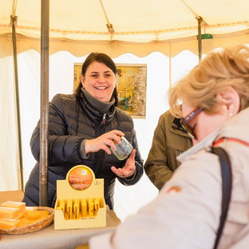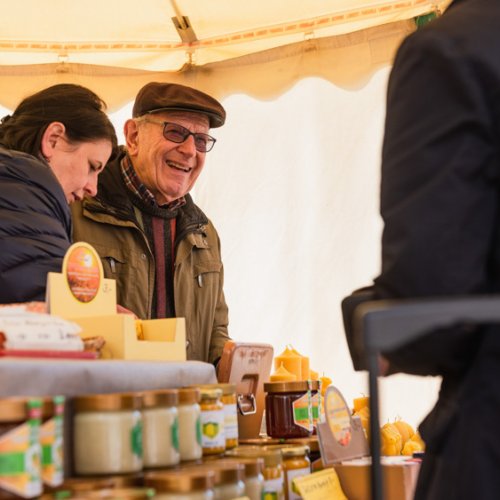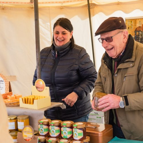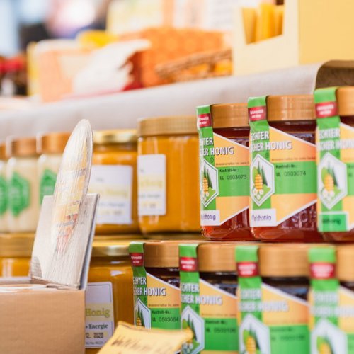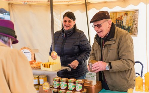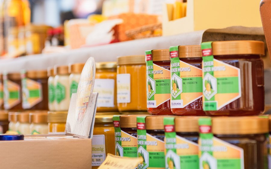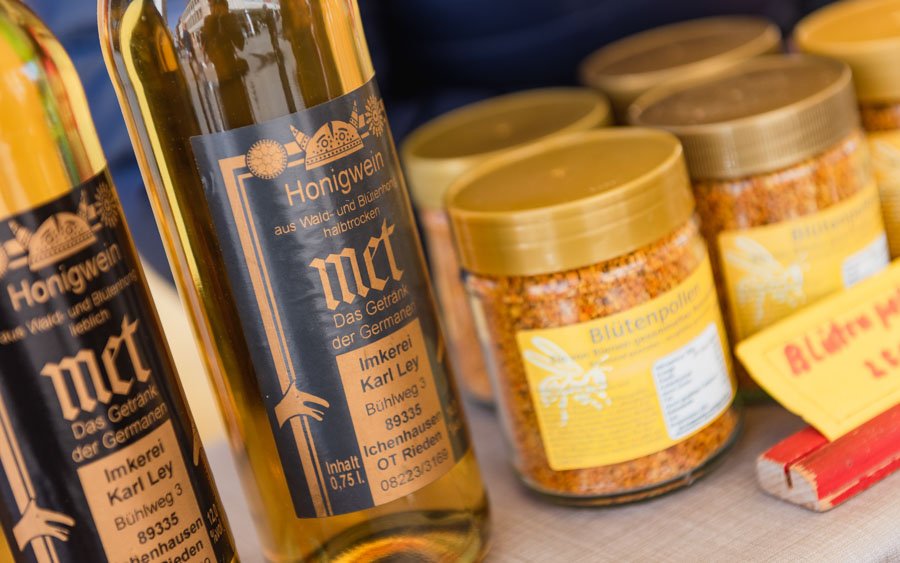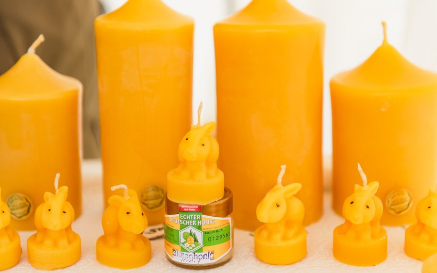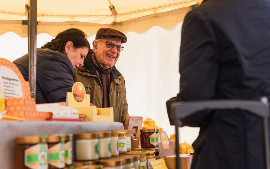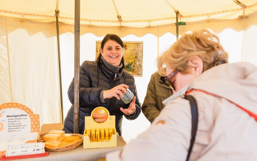 Was in dem Bürokratendeutsch aber gar nicht vorkommt: Honig ist ein Geschenk der Natur – und so sprichwörtlich süß und lecker, dass es eine Freude ist. Am Stand von Imker Karl Ley aus Ichenhausen (Kreis Günzburg) wird schnell deutlich, wie viel mehr Honig und Honigprodukte zu bieten haben. Karl Ley hat von der Kerze bis zur Wabe praktisch alles im Angebot, was es rund um das Thema Honig alles so gibt. Seine Kollegen schätzen ihn als treuen und langjährigen Marktbeschicker, seine vielen Stammkunden als ausgewiesenen Fachmann rund um das Thema Bienenhonig.