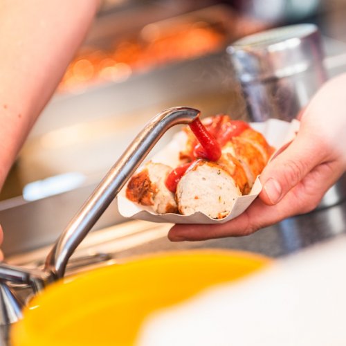 Bei Imbiss Haller geht es um die Wurst: Bekannt und beliebt bei regelmäßigen Besuchern des Ulmer Wochenmarktes ebenso wie bei Durchreisenden oder Gästen. Bei Imbiss Haller gibt es lecker gebratene Würste in vielen Variationen: Rote oder Weiße, Curry-Wurst oder auch mal ein saftiges Steak. Es gehört dabei für ganz viele Fans des Ulmer Wochenmarktes einfach dazu, bei Imbiss Haller eine leckere Zwischenmahlzeit einzunehmen. Dafür nehmen die treuen Stammkunden dann sogar in Kauf, in „Stoßzeiten“ wie etwa zur Mittagspause, auch mal ein paar Minuten anstehen zu müssen. Aber für eine Haller-Wurst lohnt sich diese Geduld immer!