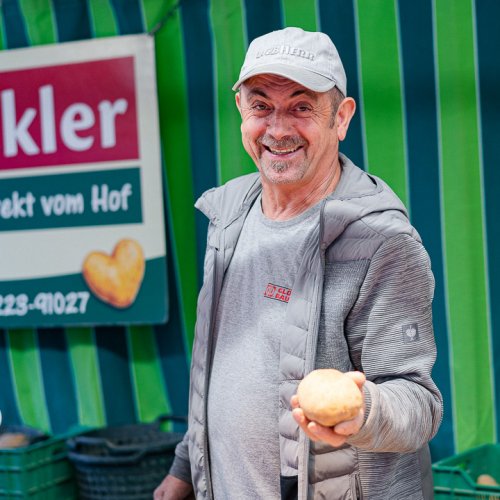 Sollte die Last eines ganzen Kartoffelsacks dann doch zu schwer sein, bringt Roman Glöckler den Sack dann auch schon mal direkt zum Auto seiner Stammkunden. Service, Qualität und guter Geschmack seiner landwirtschaftlichen Produkte gehören für Roman Glöckler und sein Team ganz einfach zusammen.