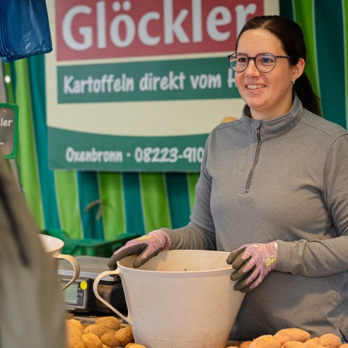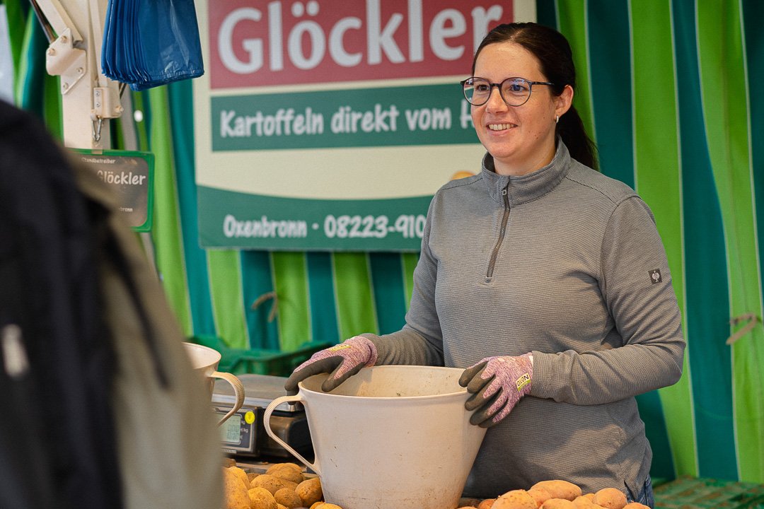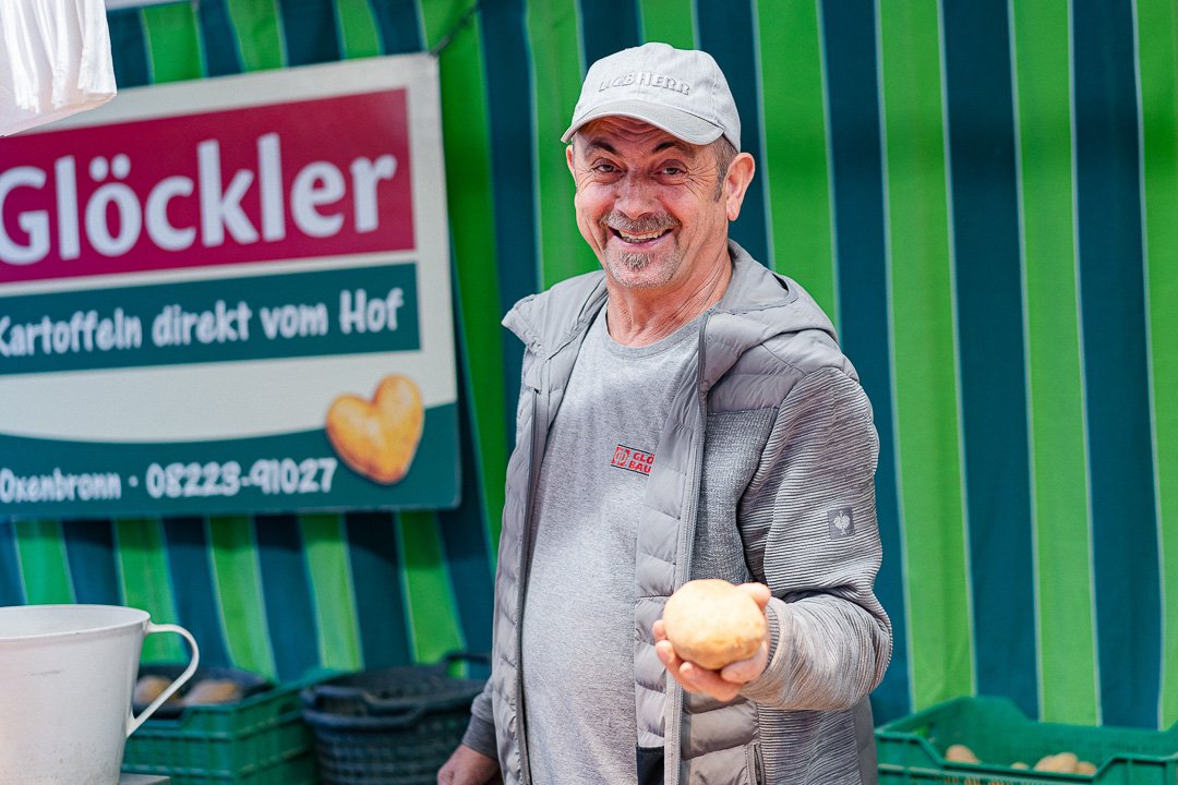 Wer einen ausgewiesenen Kartoffel-Profi sucht, der ist am Stand von Roman Glöckler aus Oxenbronn bei Ichenhausen (Kreis Günzburg) ganz bestimmt richtig. Roman Glöckler verkauft die Erdäpfel, die auf seinem Land wachsen, von ihm geerntet werden und direkt zum Verbraucher auf den Ulmer Wochenmarkt geliefert werden. Egal, welche Sorte Kartoffeln man sucht – am Stand von Roman Glöckler wird man ganz bestimmt fündig!