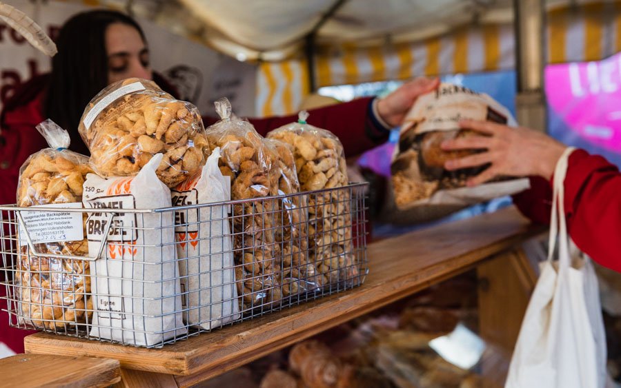 Hier gibt es das Brot, das die Landbäckerei Habdank aus Volkratshofen im Allgäu so bekannt gemacht hat: lange frisch und knusprig – wenn es überhaupt die Gelegenheit bekommt und nicht gleich verputzt wird, so gut schmeckt das Brot von Habdank.
