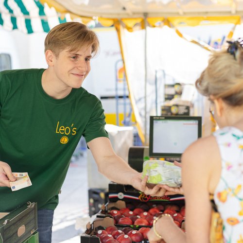 Gemeinsam mit seinem jungen Team bietet der sympathische Standbetreiber ein umfassendes Sortiment an vorwiegend regionalem Obst und Gemüse an. Im Fokus dabei kontrolliert konventioneller Anbau von kleinen Familienbetrieben. Aber auch Exoten findet man am Stand. Tipps und Rezepte gibt’s gleich mit auf den Weg.