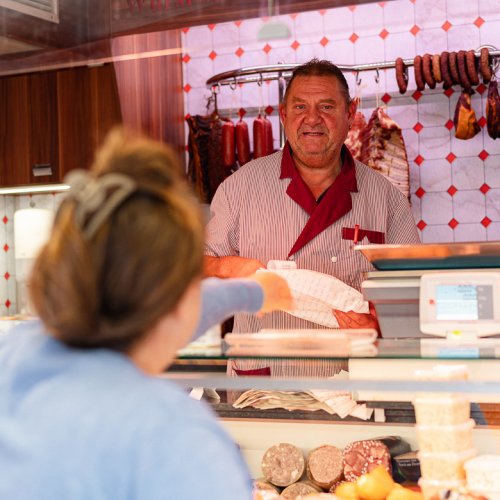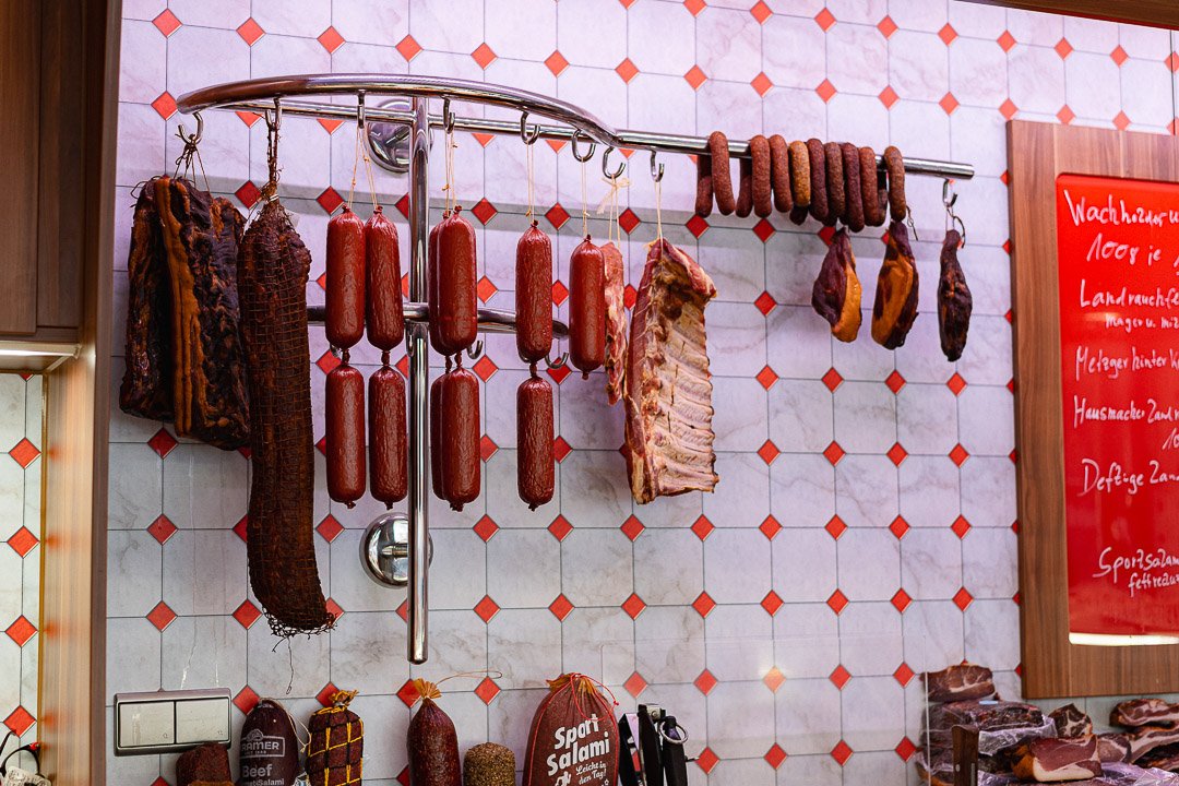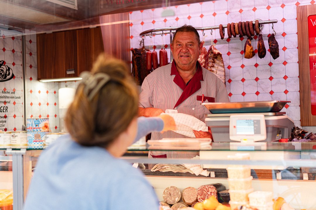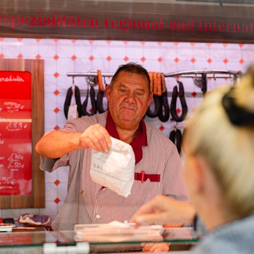Doch mit Freundlichkeit allein kommt man auf dem Ulmer Wochenmarkt auch nicht weiter – die Kunden erwarten zu Recht beste Produkte und frische Fleisch- und Wurstwaren: