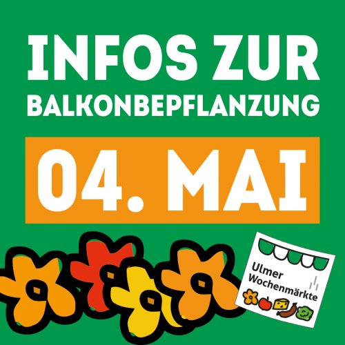 Am Samstag, dem 04. Mai, kommt die Staatsschule für Gartenbau aus Stuttgart-Hohenheim mit einem Infostand auf den Ulmer Wochenmarkt. Hier könnt Ihr Euch über die Bepflanzung der Balkonkästen informieren. Auch werden hier alle Fragen rund über die Frühjahresplanung beantwortet.